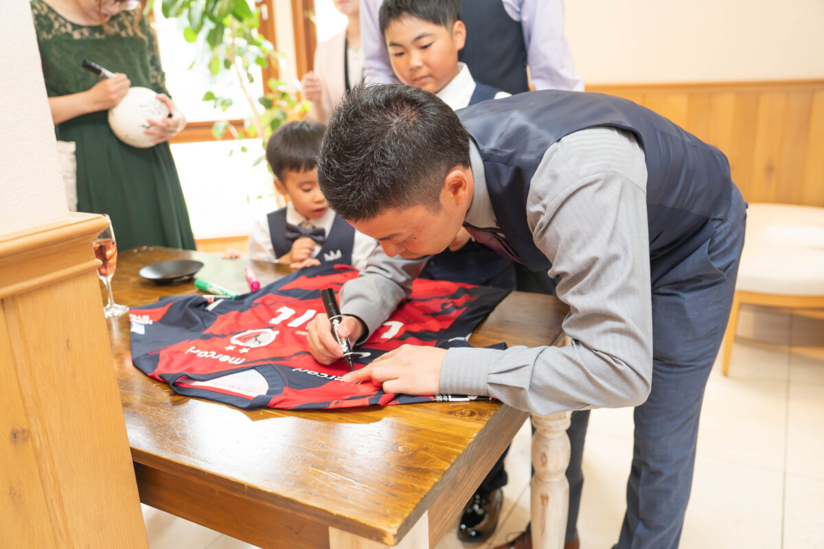 ユニフォームやボールにはゲストからお祝いのメッセージをいただきました。