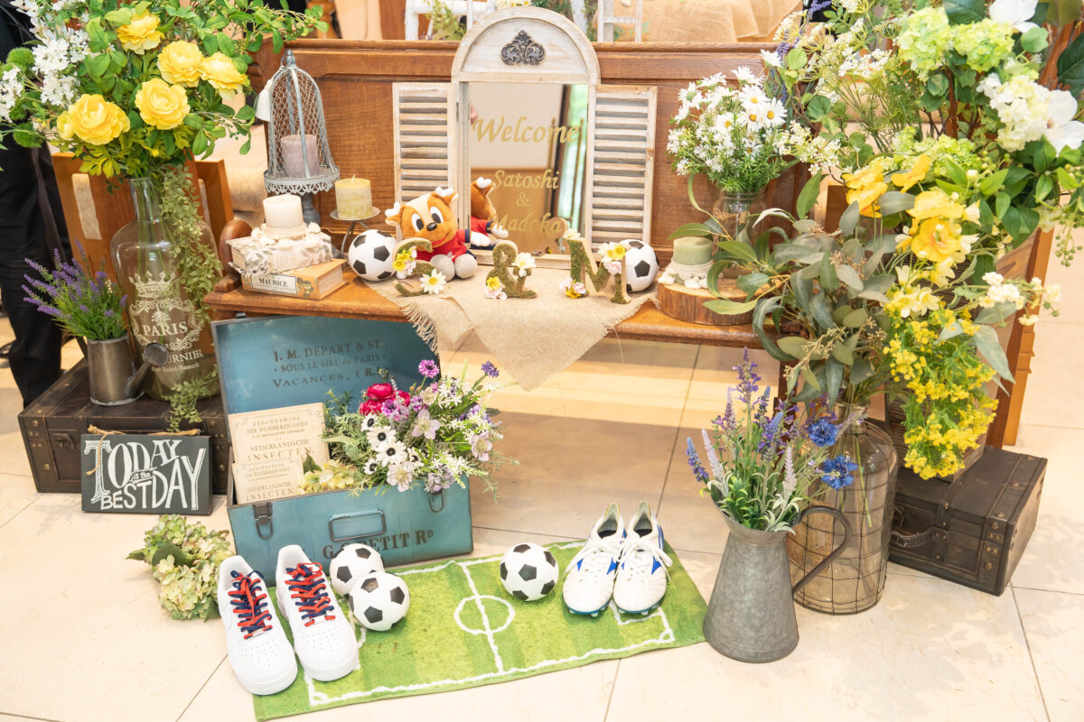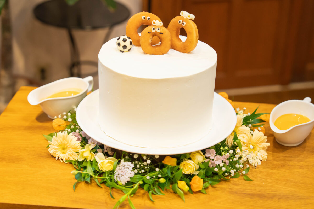お打ち合わせ当初はサッカーのフィールドをイメージしたデザインで考えていましたが、お子様が産まれたのでこちらの可愛いデザインに変更!