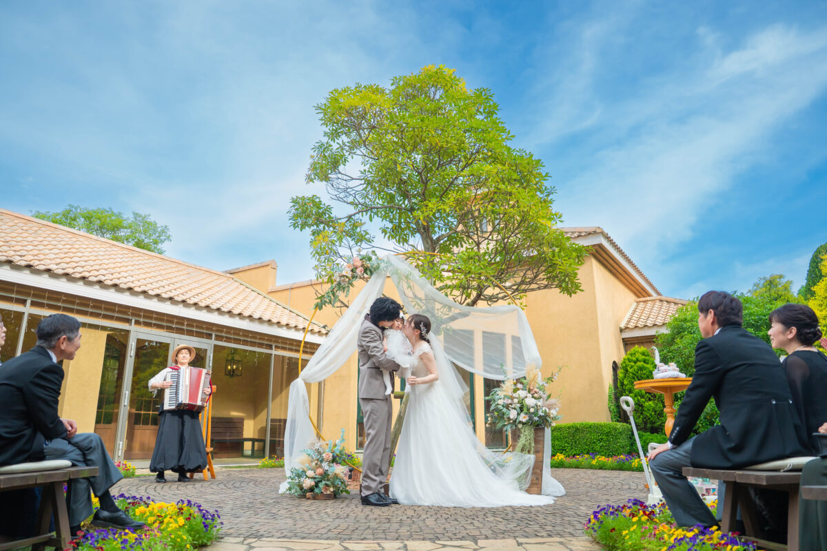青空のもと沢山のゲストに祝福され夢が叶った瞬間です。