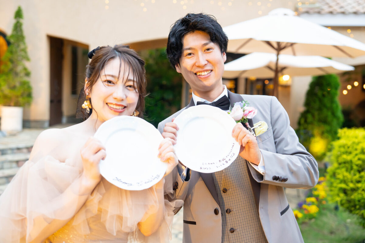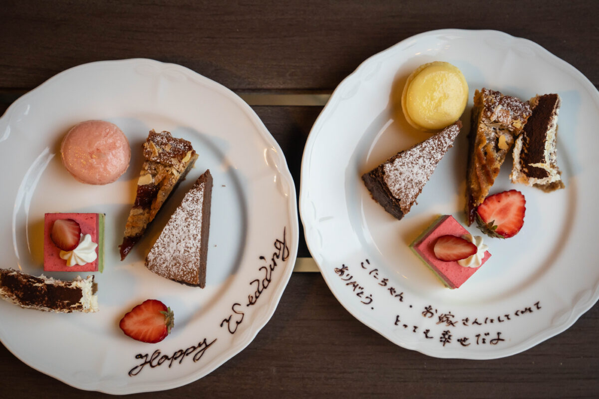 ご新婦からご新郎へデザートビュッフェのお皿へメッセージ