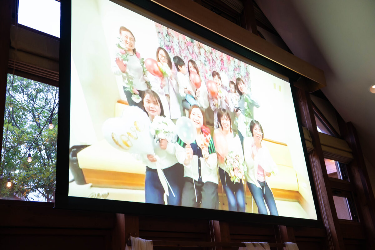 ご新郎からはご新婦ゆかりの方からのお祝いメッセージを映像にして届けました。