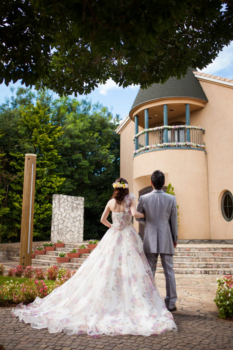 エスポワールでは、都心とはひと味違う自然豊かなガーデンに映えるグランマニエのドレスが選ばれています。天気の良い日は真っ青な青空の下、全てのロケーションが最高のフォトスポットになります。