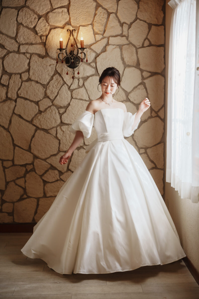 エスポワールという特別な空間で映えるウエディングドレスやカラードレス、和装まで取り揃えております。厳選されたラインナップをご覧ください。新郎様のタキシードや紋付き袴、ご両家ご親族の皆さまのお衣裳も取り扱っております。